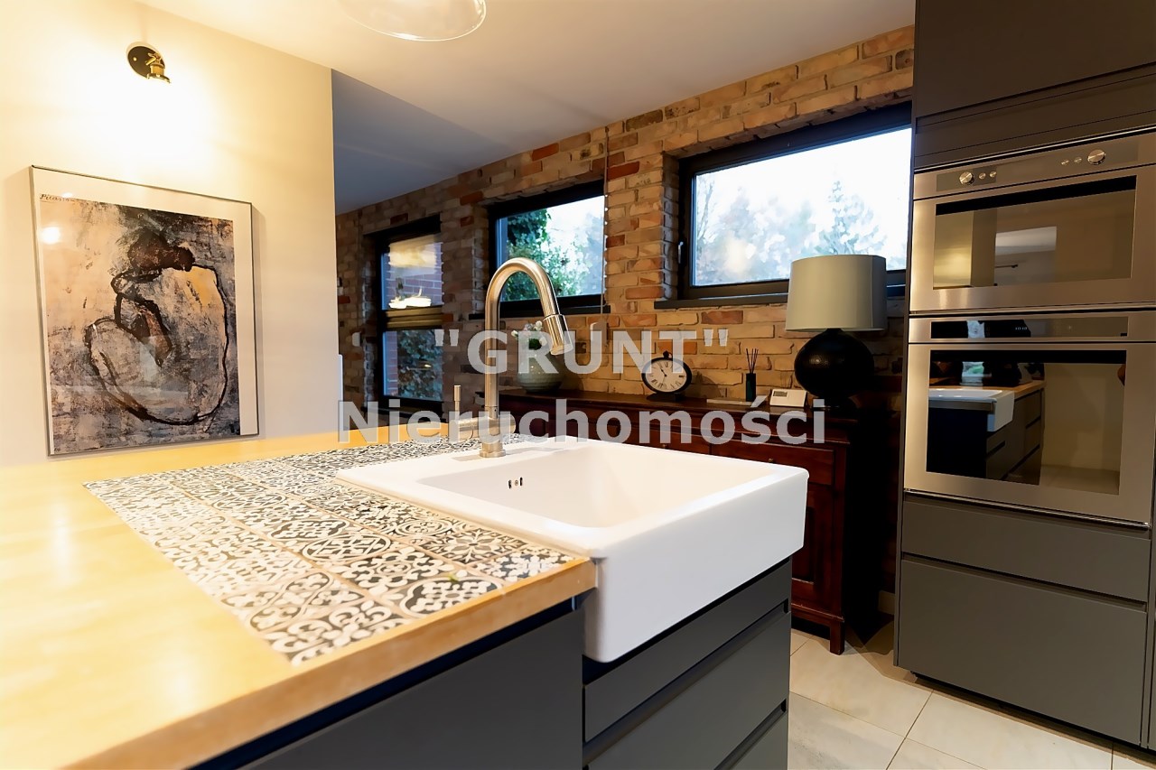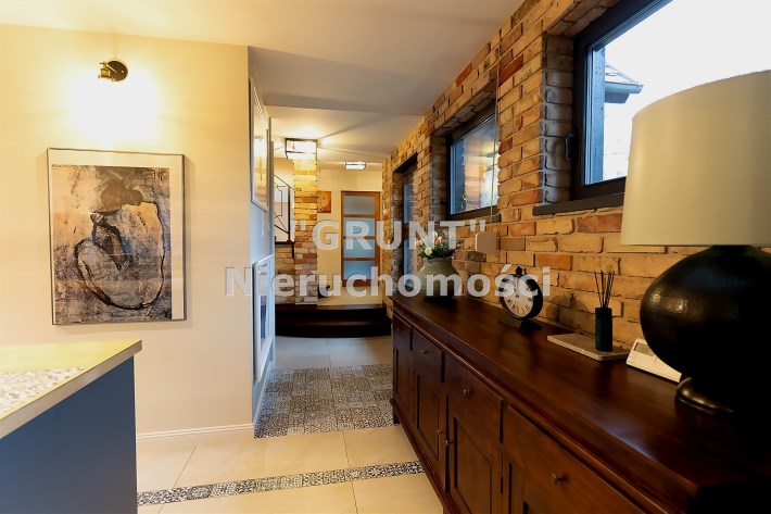 Nowoczesna stolarka okienna w całym domu, rolety sterowane elektrycznie. Ściany gipsowane, malowane, częściowo wykończone oryginalną cegłą. Na podłogach deska drewniana wysokiej jakości oraz glazura. Na działce garaż o pow. ok. 50 m2 oraz wiata.