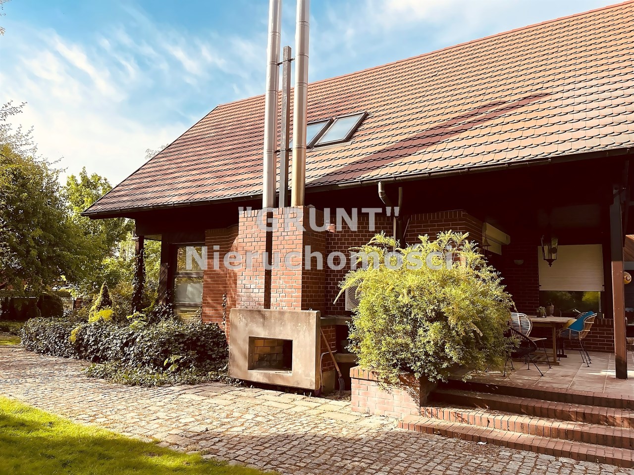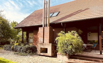 Dom o powierzchni użytkowej 302m², Dom składa się z dwóch połączonych części. Pierwsza wybudowana w 1996 roku, parterowa z poddaszem użytkowym. Okna drewniane, dachówka cementowa. Konstrukcja domu stalowa. Druga część parterowa a płaskim dachem wybudowana w 2008 r również z 3-szybowymi oknami.