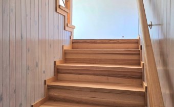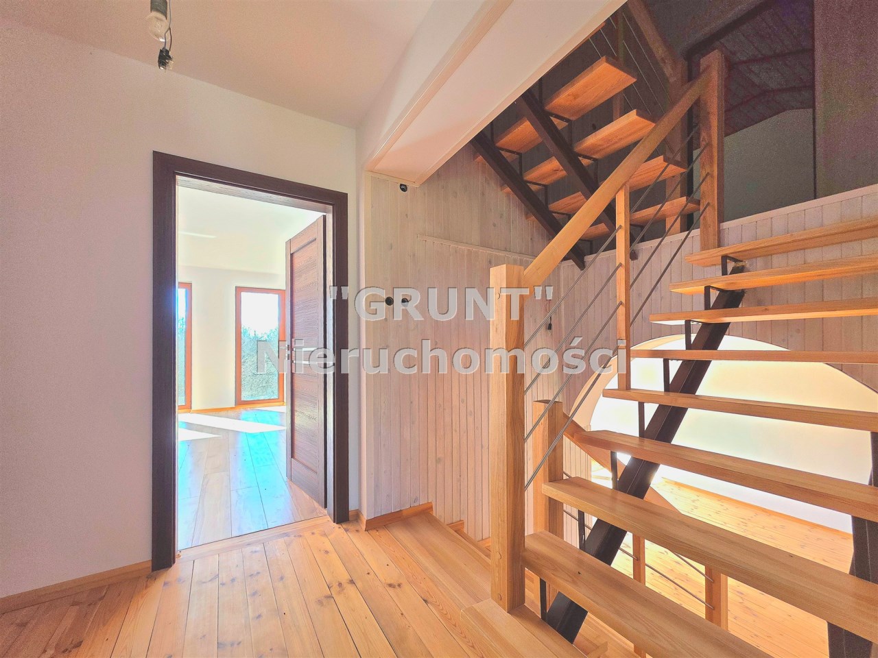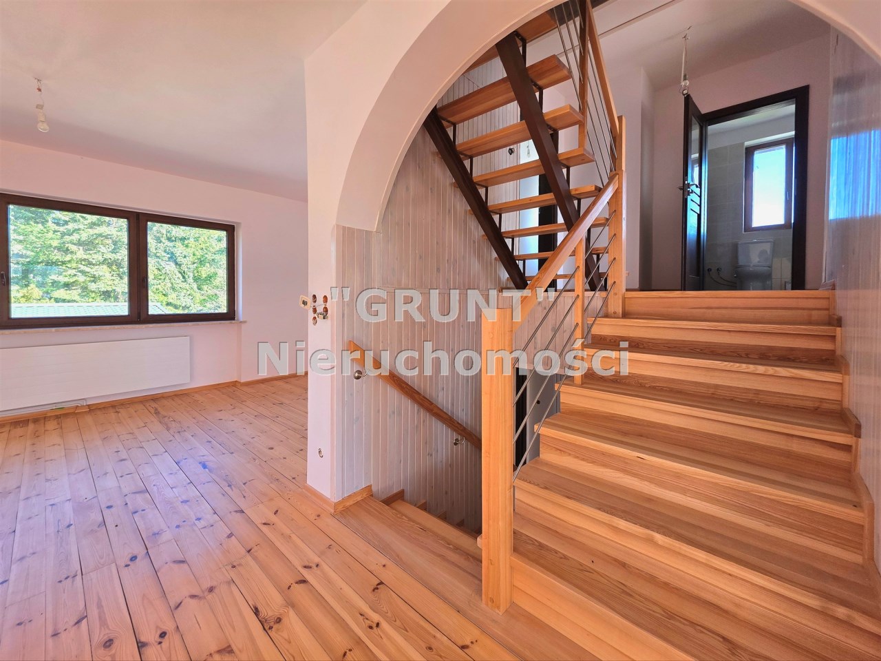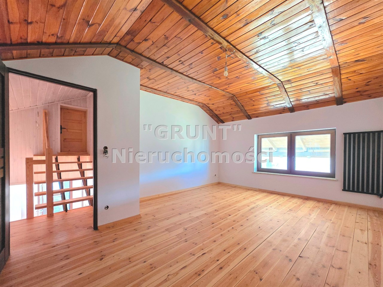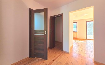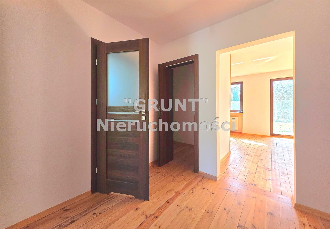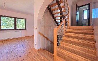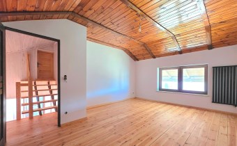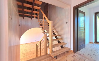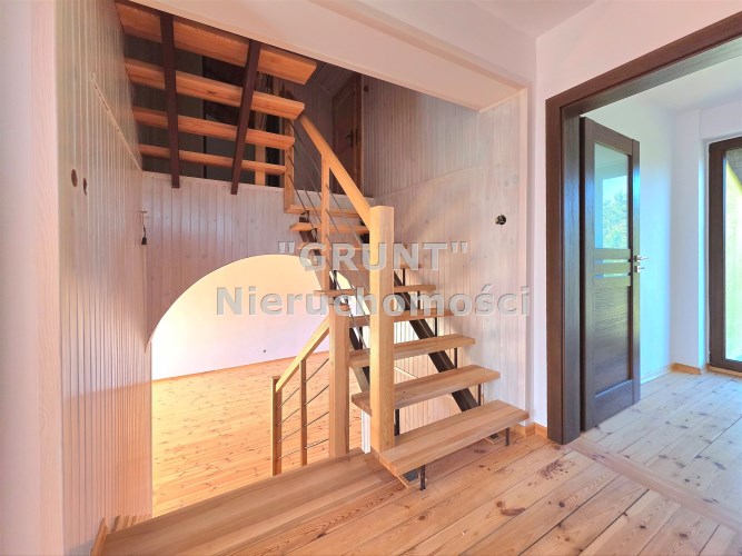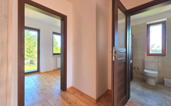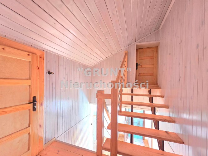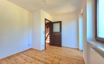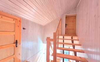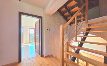 Deski drewniane na podłogach, nowa stolarka drzwiowa, schody wewnętrzne jesionowe. Wykonana izolacja budynku, ocieplony strop.